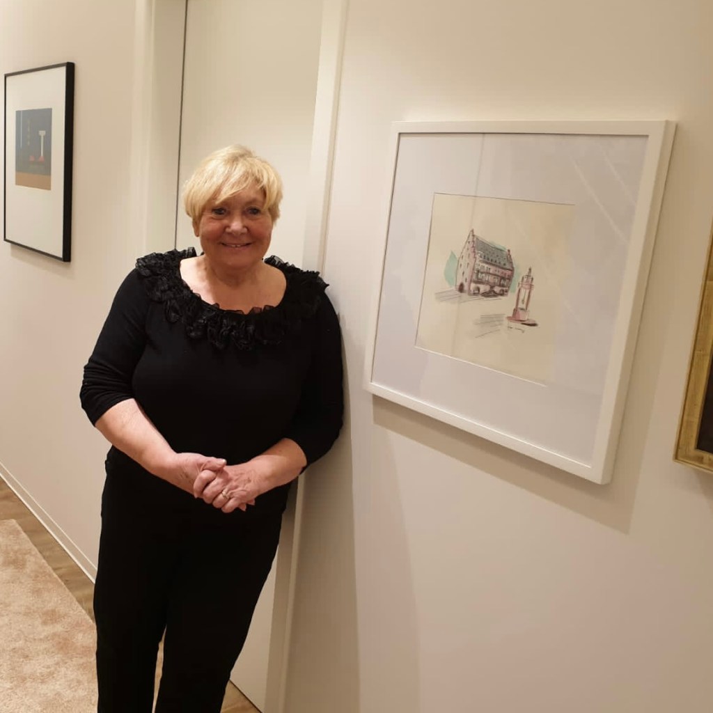 Vor einiger Zeit fragte mich die Hanauer CDU auf der Suche nach einem Geschenk für die Hanauer Oberbürgermeisterin a.D. Margret Härtel. Zum runden Geburtstag bekam sie dann im Schloss Philippsruhe „mein“ Goldschmiedehaus überreicht. Und siehe da, es hat offenbar einen Platz bei ihr gefunden.